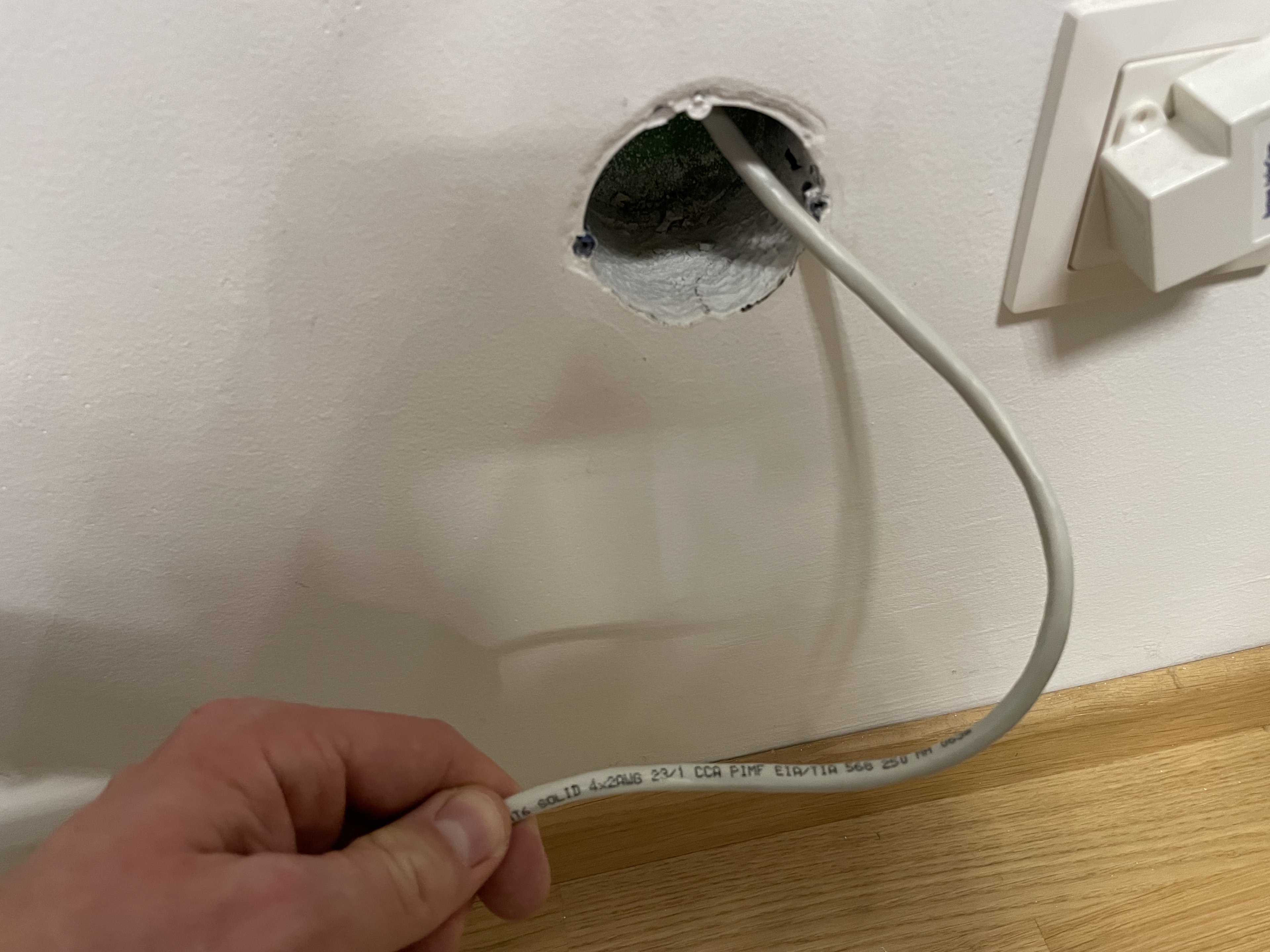 2. Cat6 Verlegekabel 25-30m an der jeweils Dose Siemens DELTA Univ.Anschluss-Einheit Anschlussdose 1x 8-pol RJ45 Kat. 6E 5TG2026-1 (Dose wurde vom Elektriker montiert)