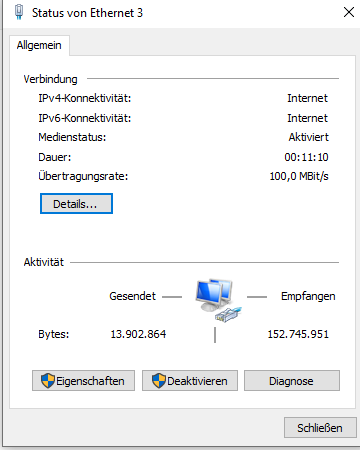 Eingestellt habe ich den Adapter auf 1 Gbit/S.