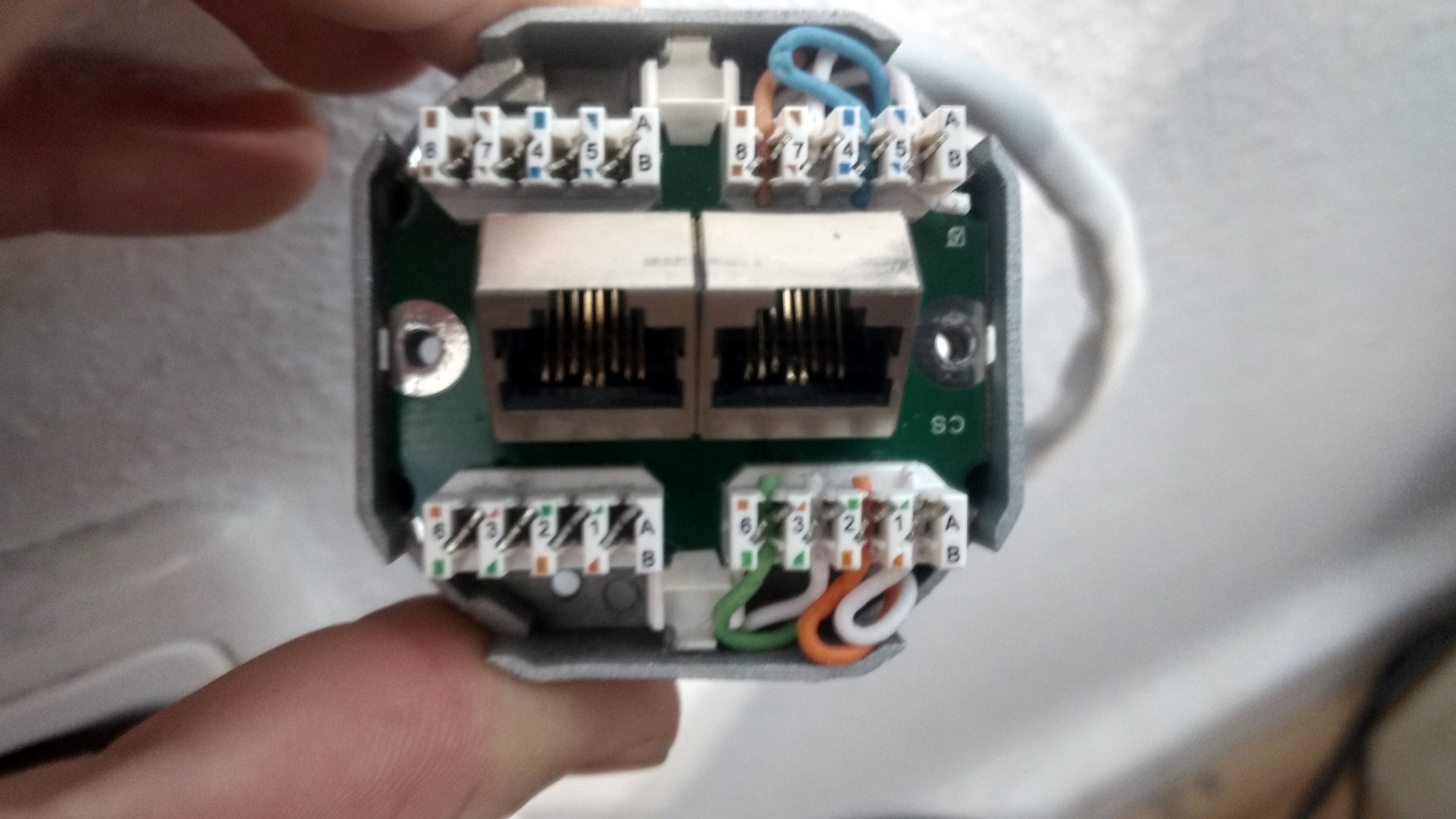 schon seit längerem hat unser Haushalt eine 120mbit Leitung, doch an kamen bei mir am PC immer nur rund 90mbit. Ich dachte mir, dass das nur Schwankungen sind und das diese Schwankung vom Anbieter aus kommt. Nun habe ich seit einigen Tagen eine 250mbit Leitung und es kommen immer noch nur ein wenig mehr als 90mbit an. Deshalb habe ich mir Gedanken gemacht und nachgeschaut woran das Liegen könnte und deswegen brauche ich eure Hilfe. Vom Router aus, der im Keller steht, geht ein Cat. 6 Kabel in ein Rangierfeld rein von welchem aus dann ein Cat. 6 Verlegekabel bis in die 2. Etage in eine Dose hineingeht. Erst dachte ich es wäre meine Netzwerkkarte, denn diese zeigte immer unter Windows als Verbindung 100mbit an. Als Test habe ich dann vor kurzem meinen Computer in den Keller getragen und an den Router per Lan angeschlossen und dort erreichte ich im Geschwindigkeitstest 260mbit und unter Windows wurde dann eine 1Gbit Verbindung angezeigt, also an der Netzwerkkarte liegt es nicht und auch an meinem Lan-Kabel nicht. Deshalb schätze ich, liegt es an der Verkabelung im Rangierfeld bzw. der Dose. Die Verkabelung wurde vor ca. 8-9 Jahren gemacht, wo nur eine 8mbit Leitung im Haus war. Im Anhang findet ihr Bilder von beidem.