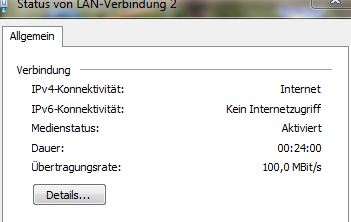 Leider wird mir im Status der LAN-Verbindung nur 100,0 MBit/s als Übertragungsrate angezeigt.