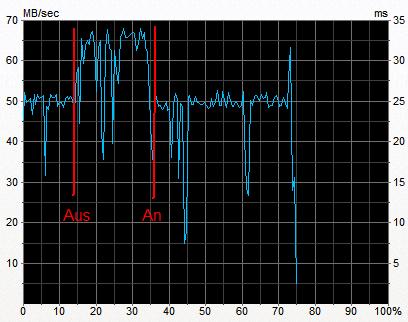 Wenn ich die schreibgeschwindigkeit vom Raid messe währent die Karte an ist und dann wieder aus, sieht man "gewaltige" unterschiede...
