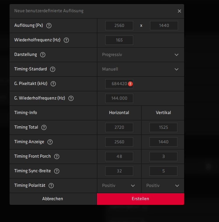 Ich würde gerne die native Bildwiederholfrequenz von 165Hz einstellen können.