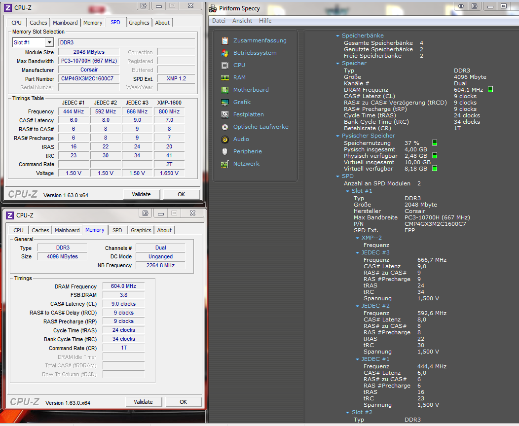 Ich hab das Problem das mein Arbeitsspeicher meiner Meinung nach nicht volle Leistung bringt allerdings hab ich auf dem Bereich nicht sehr viel Ahnung. Jedenfalls hab ich mir "Speccy" "Everest" und "CPU-Z" downloadet und euch mal die werte zu posten und ihr sagt mir dann ob da alles in Ordnung ist