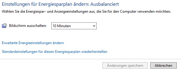 Im Hauptfenster sehe ich zB nur "Bildschirm auschalten", die Option "Energiesparmodus nach" habe ich gar nicht. Auch wenn ich dann in die erweiterten Einstellungen gehe, fehlen mir hier etliche Punkte.