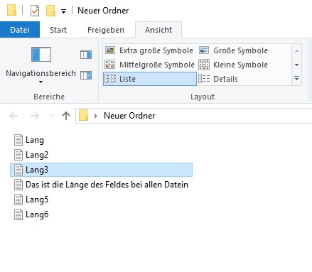 Umso länger der Name einer Datei ist, umso länger ist auch das Feld/Spalte.