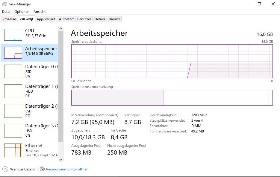 mir ist gerade mal aufgefallen, dass im Taskmanager meine Arbeitsspeicherauslatung bei ca. 44% liegt, obwohl nur Firefox etwa 4GB braucht und der rest ein paar MB.