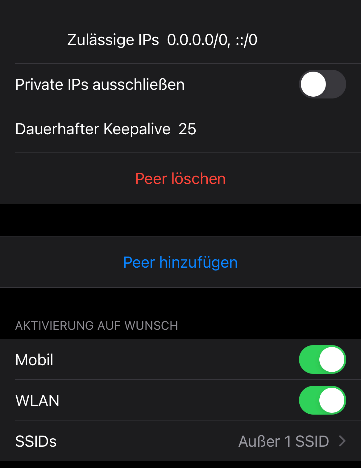 Ich hatte es ursprünglich per Wireguard VPN gelöst, aber beim Ausschalten des iPhones (mache ich regelmäßig) deaktiviert sich die Verbindung und bei Wiedereinschalten vergesse ich dann öfter mal, VPN wieder zu aktivieren, daher muss die Automation leider über eine extern erreichbare URL gehen.