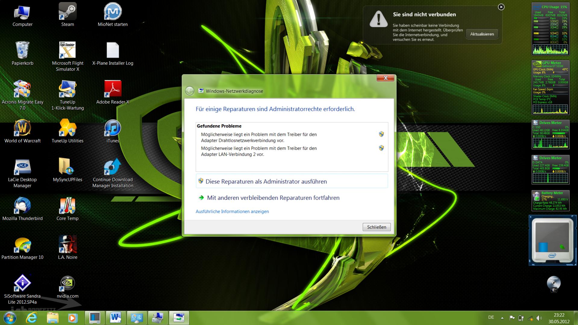 Ich habe ein Dell XPS 17 L702x. Seit gestern habe ich plötzlich kein Internet mehr. Problem sei angeblich "ein Problem mit den Treibern" was ich mir allerdings nicht vorstellen kann da ich weder etwas geändert noch neue Trieber installiert habe. Da ich mich in diesem Gebiet leider nicht so auskenne habe ich einfach mal Screenshots gemacht.