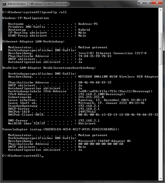 Da im Internet häufiger mal davon die Rede ist, dass eine falsche IPv4 bzw. IPv6 Konfiguration die Probleme macht, hab ich versucht in die Richtung was zu machen. War aber ständig über IPv4 verbunden und auch DHCP war aktiviert und mein PC sollte die IP eigentlich auch automatisch bekommen. Dachte, vielleicht funktioniert es, wenn ich statische Adressen vergebe. Hab dazu DHCP im Router deaktiviert, was allerdings dazu geführt hat, dass ich erstmal nicht mehr ins Menü gekommen bin. Sehr, sehr ärgerlich. Habs letztlich dann doch noch geschafft und DHCP wieder aktiviert.