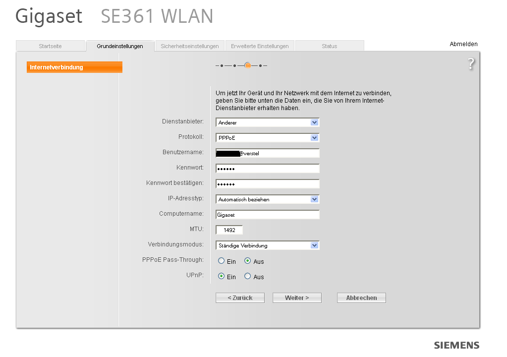 wir müssen mit 4 rechner ins internet doch es können nur 2 Rechner per Einwahlsoftware von Versatel ins Internet. Unser Router ist der Gigaset SE361 (DSL 2000).