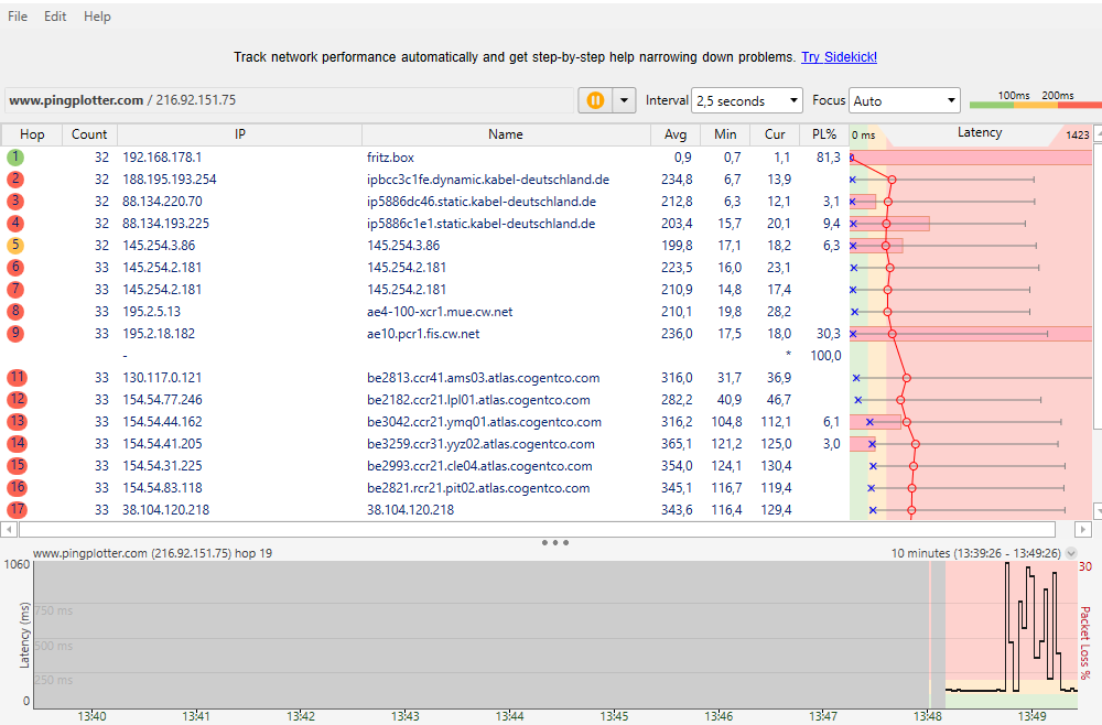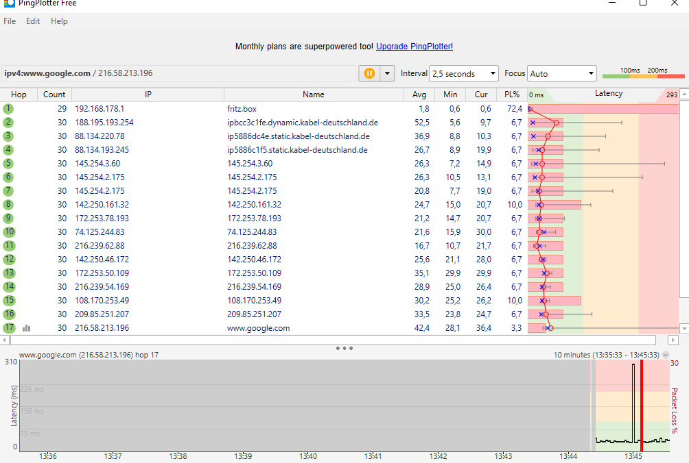 Lediglich mein PC zeigt bei Speedtests meistens einen absurd hohen Ping (900) an und läuft auf ~30/400mbit und ~0,12/25mbit, was auch bei der Nutzung spürbar ist.
