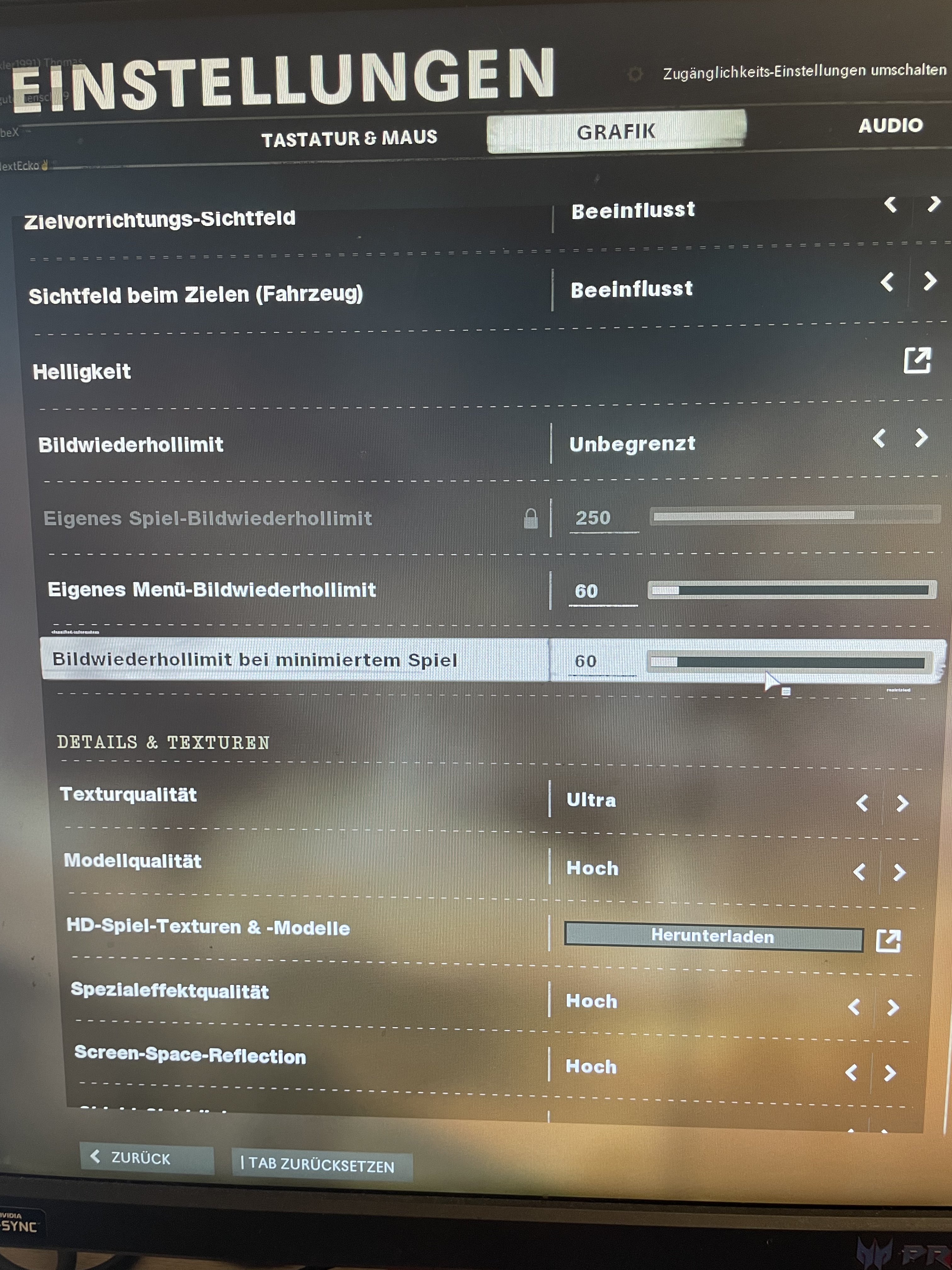 Habe mal Bilder von den Einstellungen von cod gemacht, aber egal was ich ändere, es bleibt bei so wenig fps.