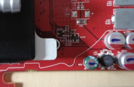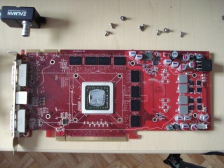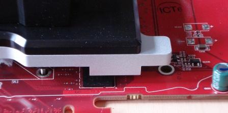 Das liegt daran, das die Vertial angeordneten Chips nicht den gleichen Abstand haben, wie bei der 3850. Weiterhin stimmen die Bohrlöcher an der Platine nur nahe der GPU, das 5te Loch passt nicht mit den vorgesehenen Pins für die Bohrlöcher!
