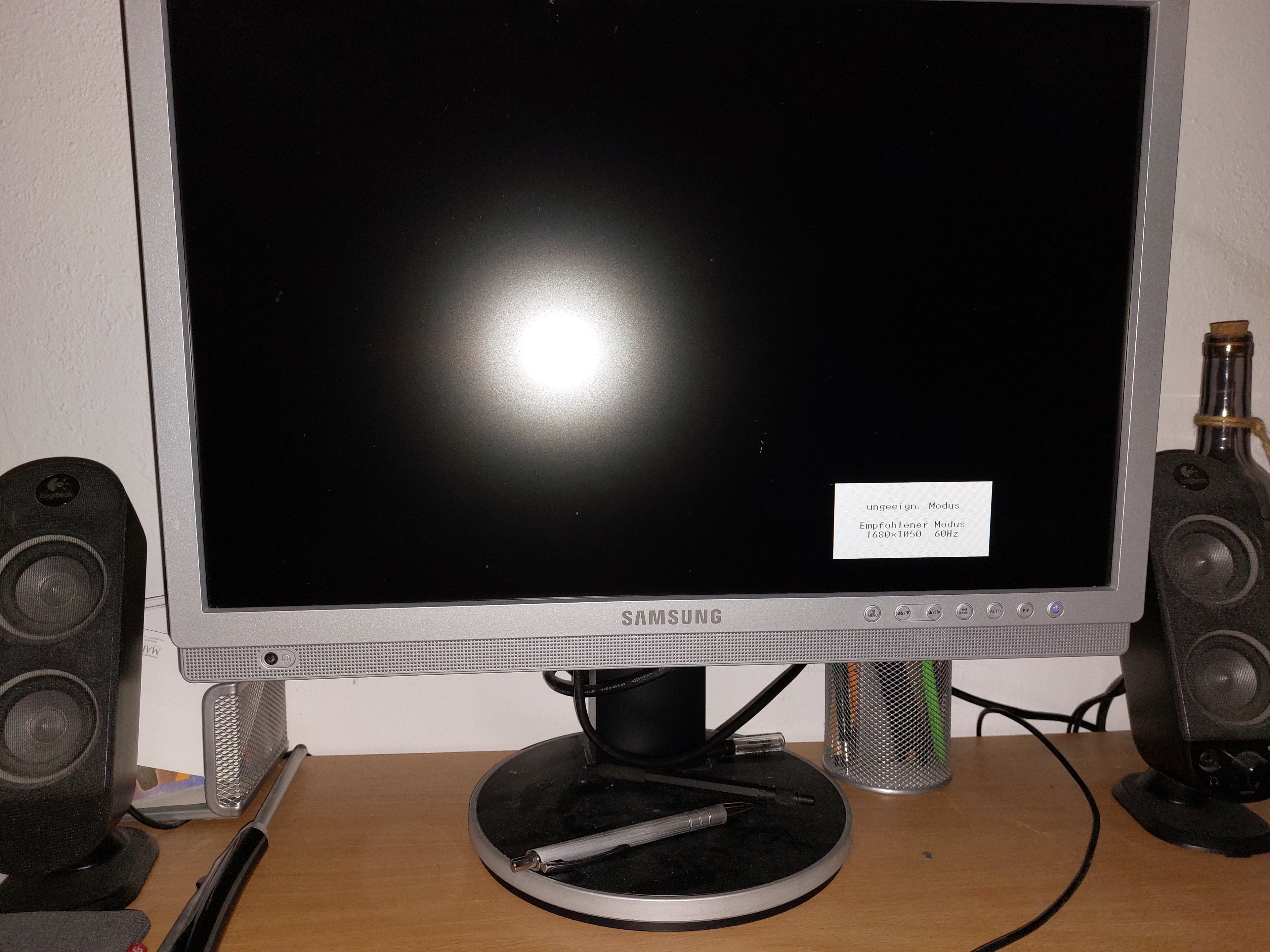 Es wurde zunächst ein korrektes Bild über VGA angezeigt doch nach wenigen Minuten wurde der Bildschirm schwarz und es hörte sich erst so an, als würde der Rechner neu starten wollen, was aber dann doch nicht passiert ist.