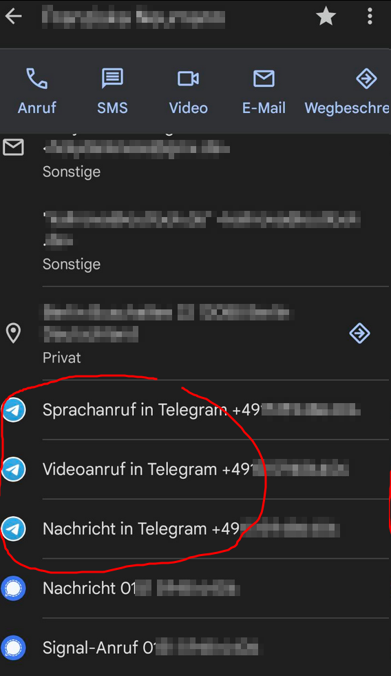 Aber obwohl ich weiss, dass der Kontakt auch Telegram nutzt, wird mir das nie angezeigt. Wie krieg ich das hin?