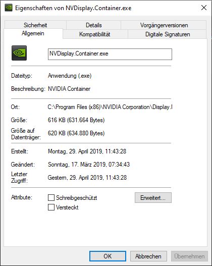 Also NVDisplay.Container.exe suchen, Rechtsklick, auf Eigenschaften gehen und voila, sollte sich das Fenster wie auf deinem Bild in seiner ganzen Schönheit zeigen.
