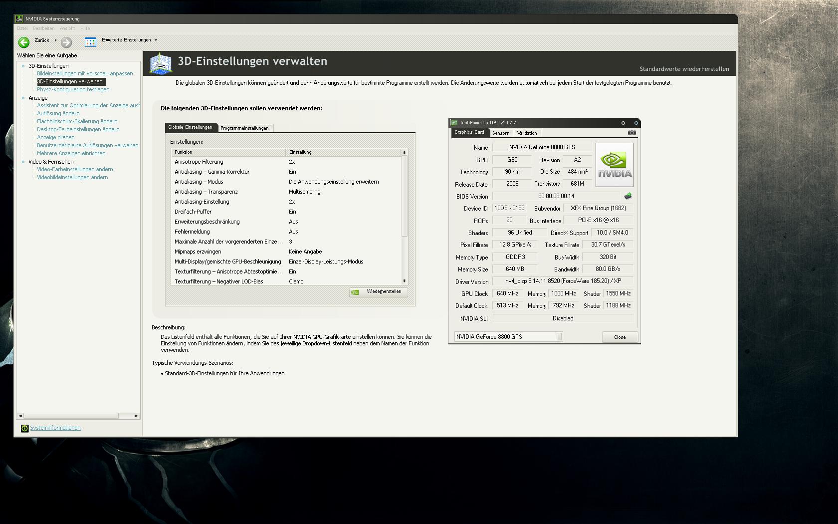 Mit dem Offiziellen Treiber waren mit meiner 88GT die Einstellungen auf 1440x900 mit Sehr hoch und Texturen auf ultra möglich