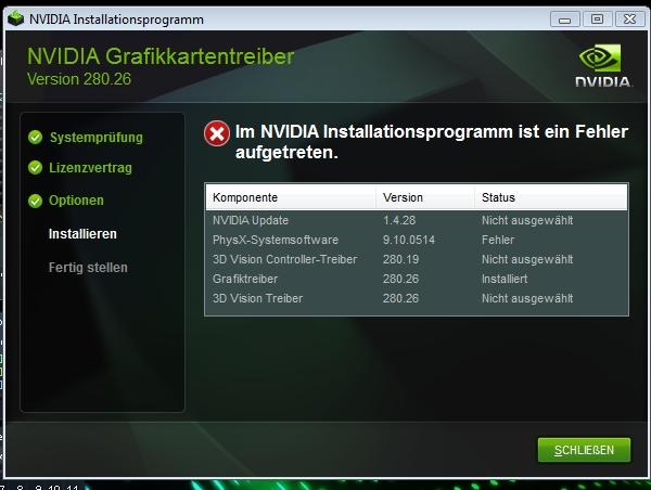 den Aktuellen Treiber von Nvidia 280.26 zu installeren ,