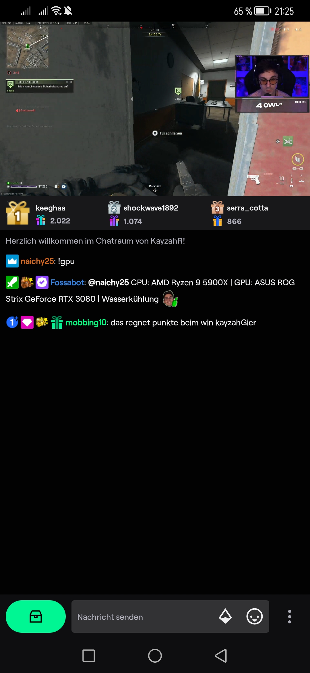 Bei Kayzahr im Stream ist der fast konstant auf 200fps: https://www.twitch.tv/kayzahr?sr=a