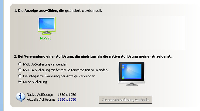 Hab mir nun eine Geforce 8800 GTX gegönnt und bekomme einfach die Monitorskalierung nicht zu laufen.