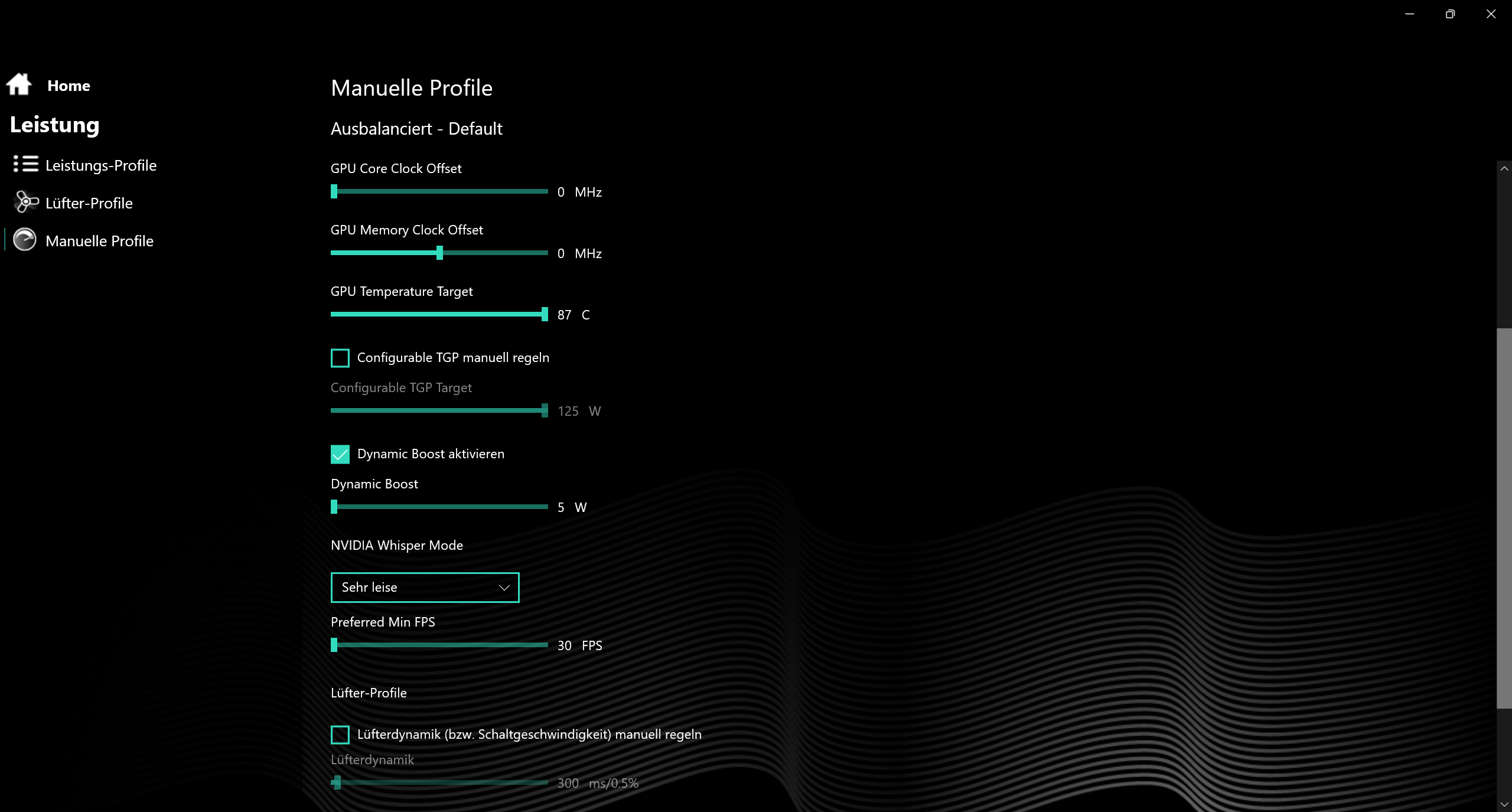 Ich habe das Problem, dass die NVidia App immer wieder die Einstellungen für den WhisperMode auf Ein und 30 FPS zurücksetzt nach kurzer Zeit.