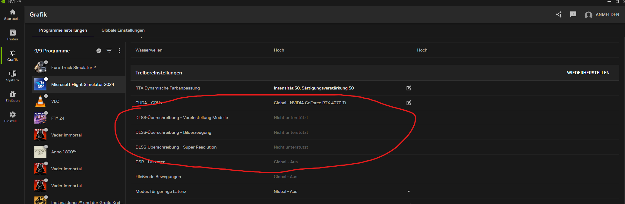 DLSS Überschreibung (für Spiele ohne „nativ“ DLSS!) geht nur mit den neuen Karten.