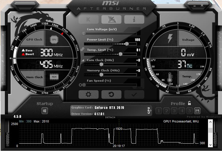 Bin allerdings noch nicht zufrieden, denn sie geht nicht über ~2085 obwohl Temp bei ~46°C und PT noch nicht erreicht. (GPU-Z zeigt Idle ber PerfCap Reason an) Jemand eine Idee?