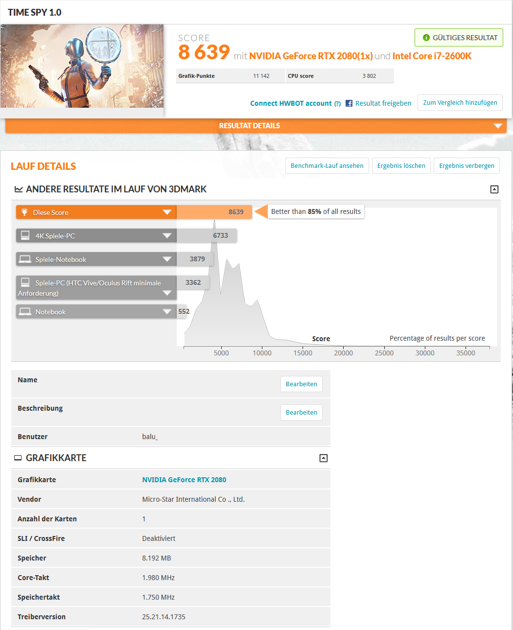 Sehe da jetzt kein Bus Limit, ist doch genau in dem Bereich wo andere Karten mit dem Takt liegen.Balu_ schrieb:11142 - MSI Geforce RTX 2080 Duke OC - Core 1980 MHz / Speicher 1750 MHz -