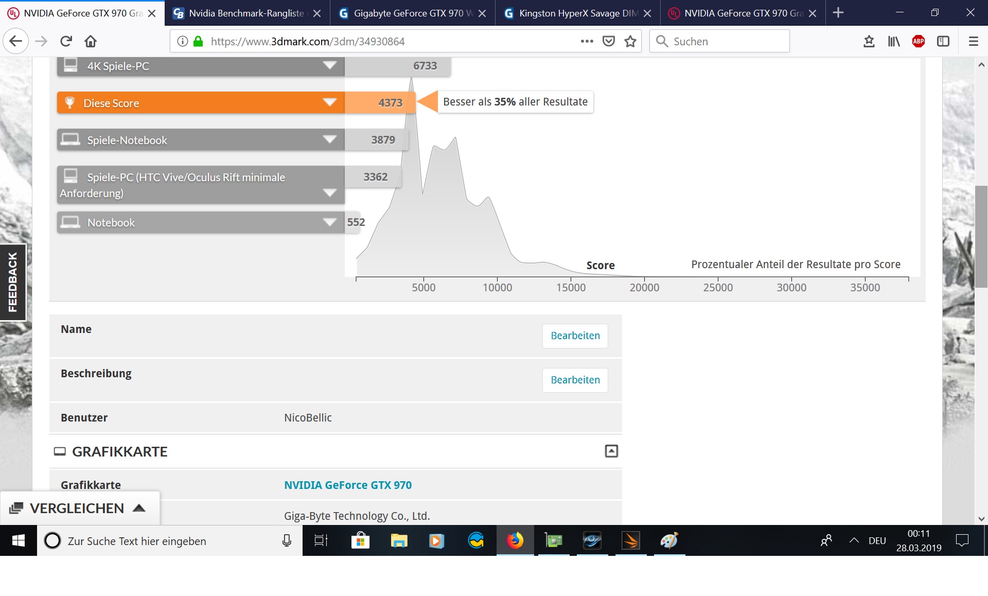 Also die Spannung ging nicht auf die GPU, ich glaube am Ende ist mein Powertarget bei MSI zu niedrig um die 11000 zu knacken. Ich habe dann mit meinem RAM gespielt. Orginal ist 3600@CL18 bei 1,35V aber er läuft gut auf CL17. Mit 1,5V konnte ich dann 4000CL17 oder 3600CL15 stabil durchlaufen lassen und 3600@CL15 hat dann auf einmal mehr Punkte gebracht. Bei Takt und Grafikram erhöhen bliebs im einstelligen Bereich.W0lfenstein schrieb:Glückwunsch zur neuen Punktzahl.