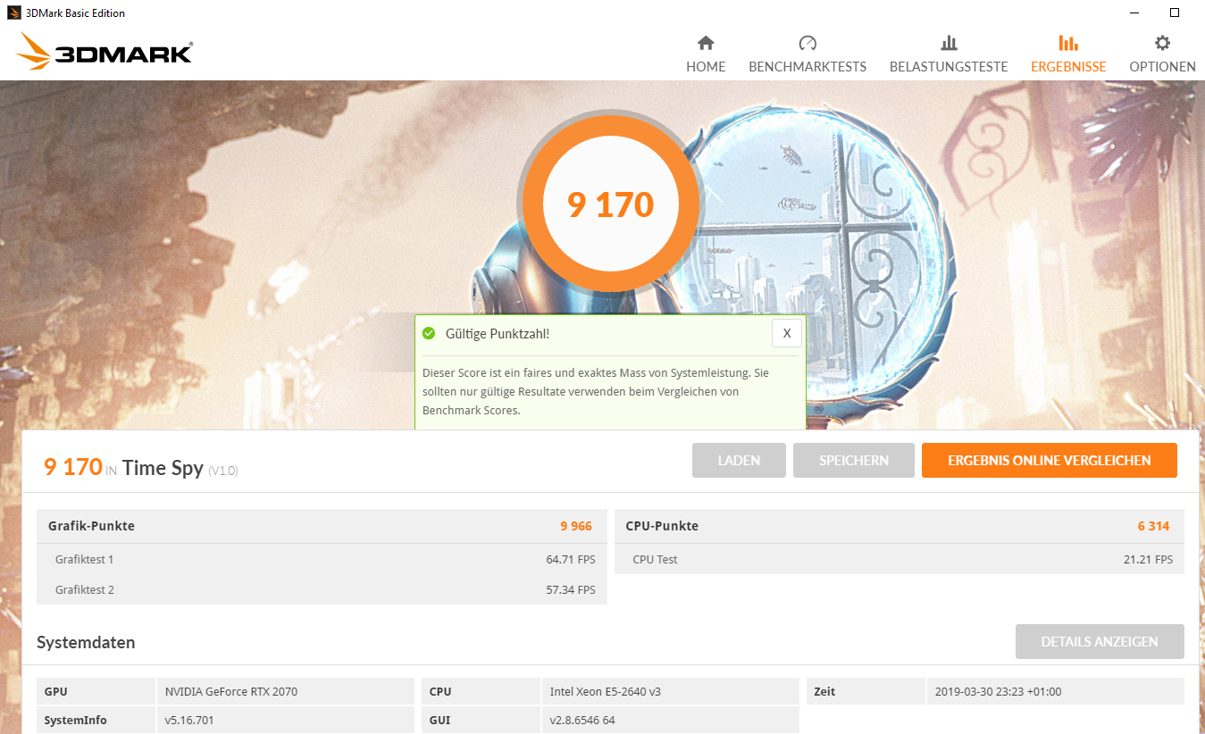 Und mehrere Durchläufe Nacheinander ohne Pause sind immer kritisch bei Pascal. Ich kann im Afterburner sehen das ab 45°C GPU die erste Drosselung kommt. Bei mir von 1,093V 2063 auf 1,081V 2050, der nächste Schritt ist irgendwo bei 53°C aber da komme ich selten hin. Mach ich direkt zwei Runs ist der zweite deutlich langsamer, erstmal gut runterkühlen und dann nochmal versuchen.