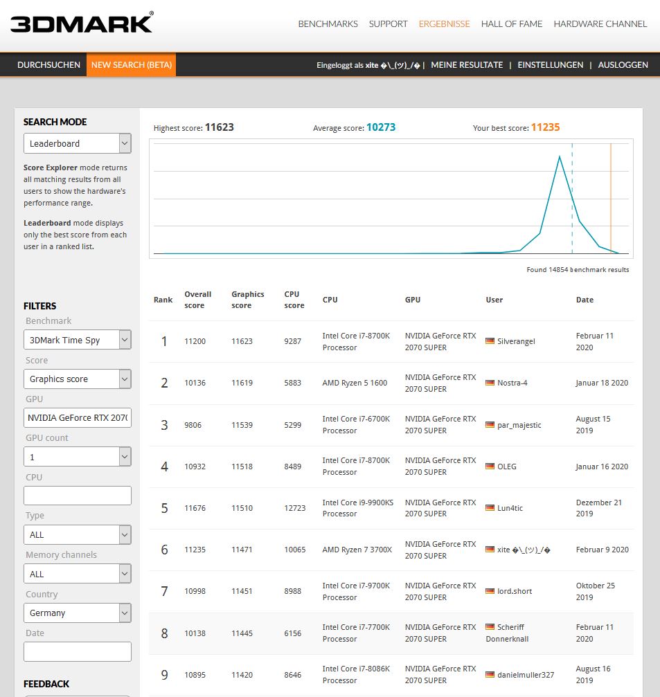 (Bei der Kombi mit meinem 8700k auf Platz 3 International. Da ginge mit besserem CPU&RAM Optimieren sicher noch was)
