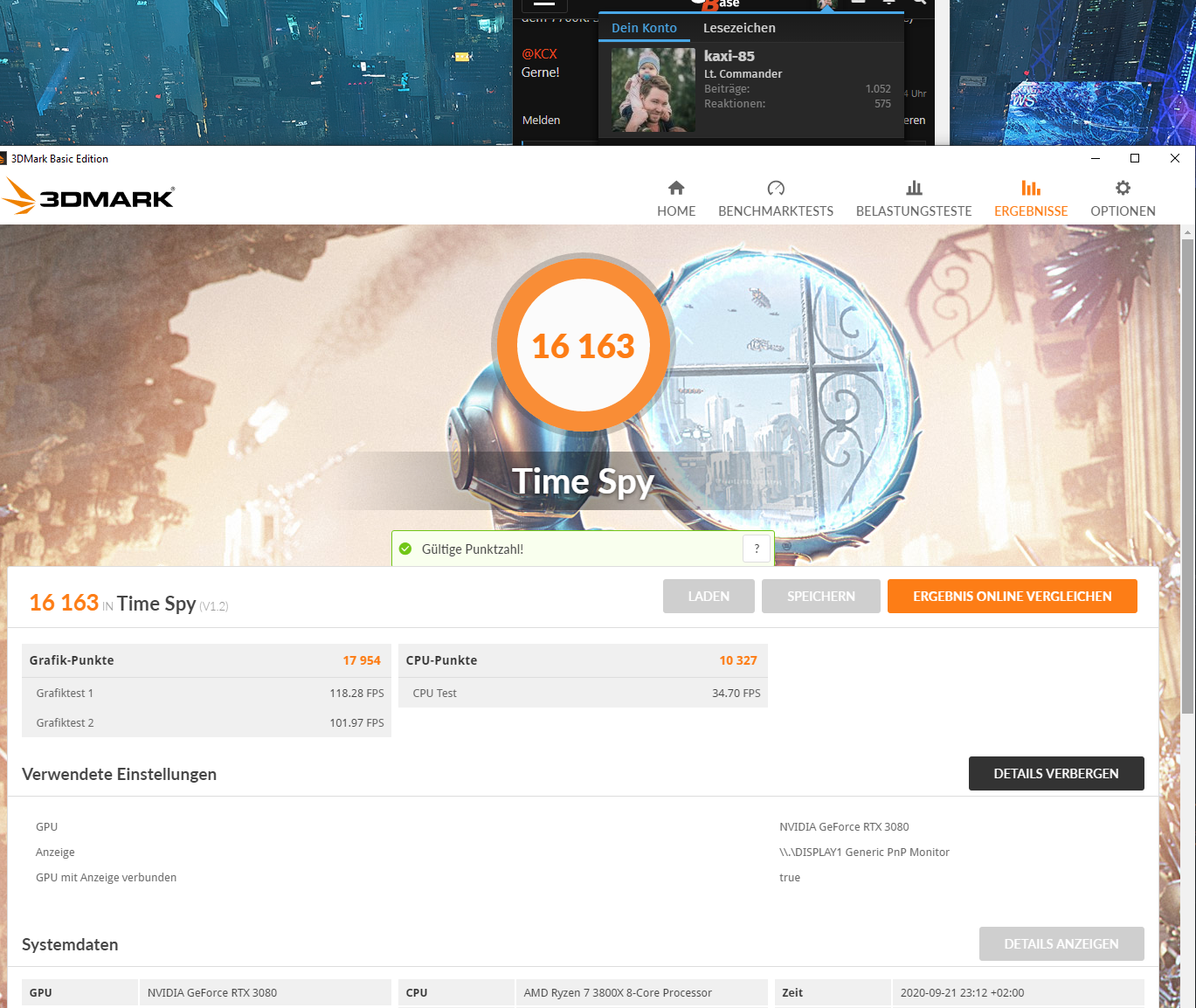 Und auch hier leider keine direkte Zuordnung möglich... (Da kein Name beim Ergebnis im Link oder ein Screenshot mit CB Nick vorhanden.)kaxi-85 schrieb:Hier mal meine Werte mit der Zotac 3080 Trinity: