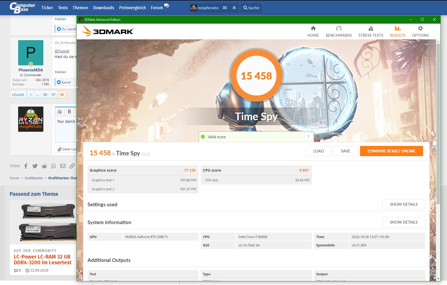 System: Intel I5-10600k @ 5ghz