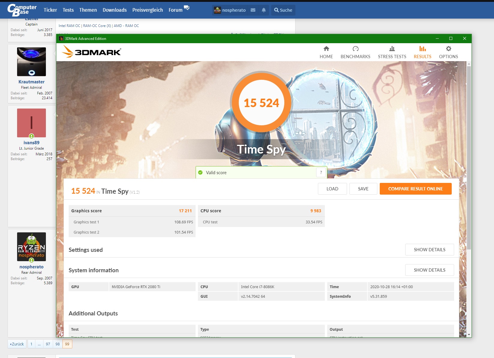 denkt dran bei der RTX 3080 den Ram nicht zu hoch zu ziehen, taktet der zu hoch brechen die Ergebnisse ein. Es muss also der Ram Takt so lange erhöht werden bis die Punkte beginnen wieder zu fallen.