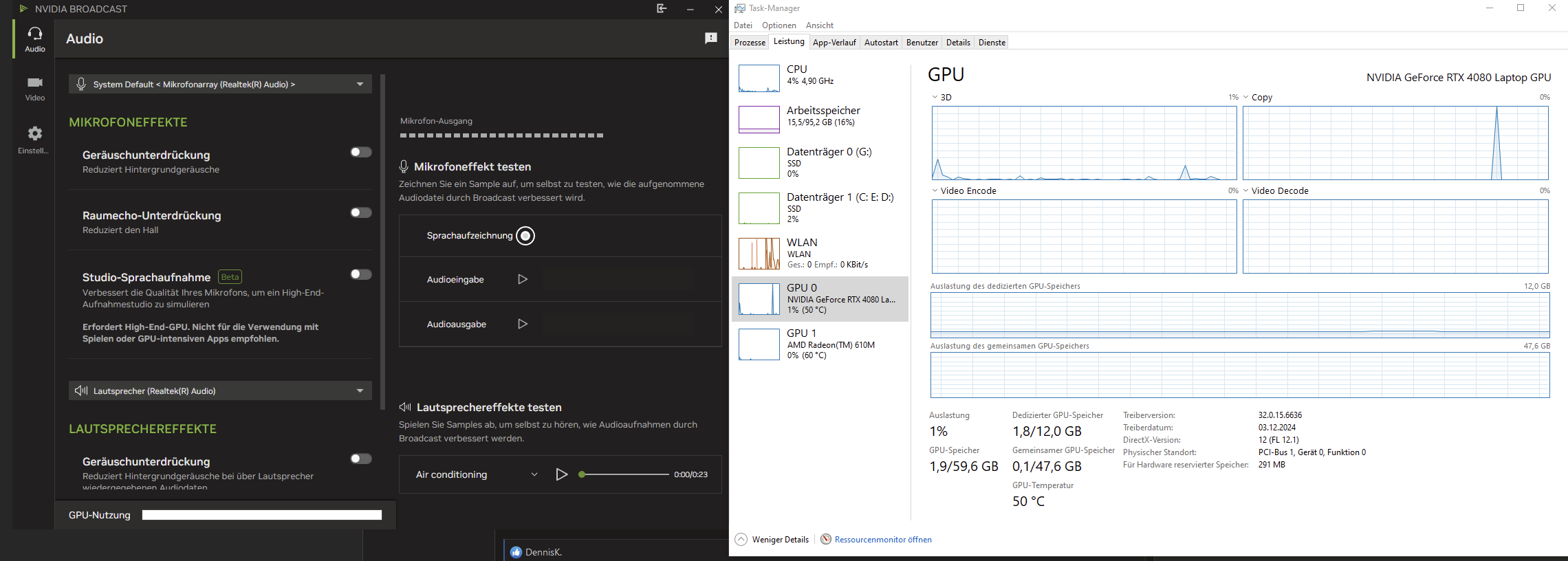 Nutze Broadcast tatsächlich mit meiner RTX 2070 Super für Streams, Videos und Konfis. So kann ich dem Thomann Mikro doch noch etwas Lebenszeit schenken, bevor ich es austausche.