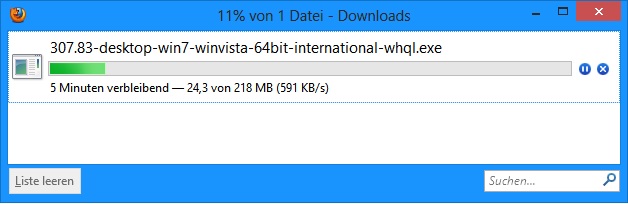 Bin eben gerade auf die Idee gekommen, mal einen anderen Browser zu nutzen. Mit dem IE geht es, ich denke, hoppla, versuch noch mal den Fox, und plötzlich rennt der download dort auch. Irgendwo ist da ein Problem bei NV, bei meinem ersten post um 18.00Uhr war ich bei mageren 15kbit.