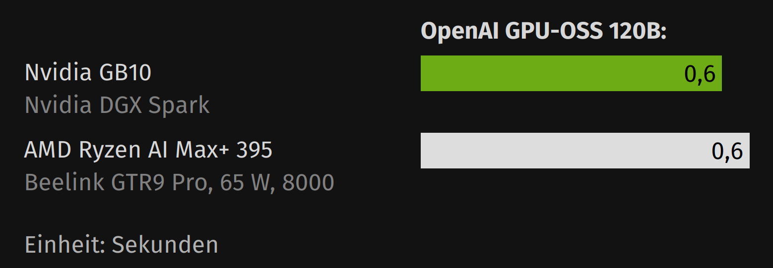 Im Artikel fehlt bei den Benchmarkdaten die TDP der Nvidia DGX Spark (240 W als Randnotiz im Text zu entnehmen, wobei 140 W auf dem Grafikchip anfallen). Außerdem gibt es für die Leistungsaufnahme kein Vergleichswert, da würden mich die Daten zu dem AMD Ryzen AI Max+ 395 interessieren.