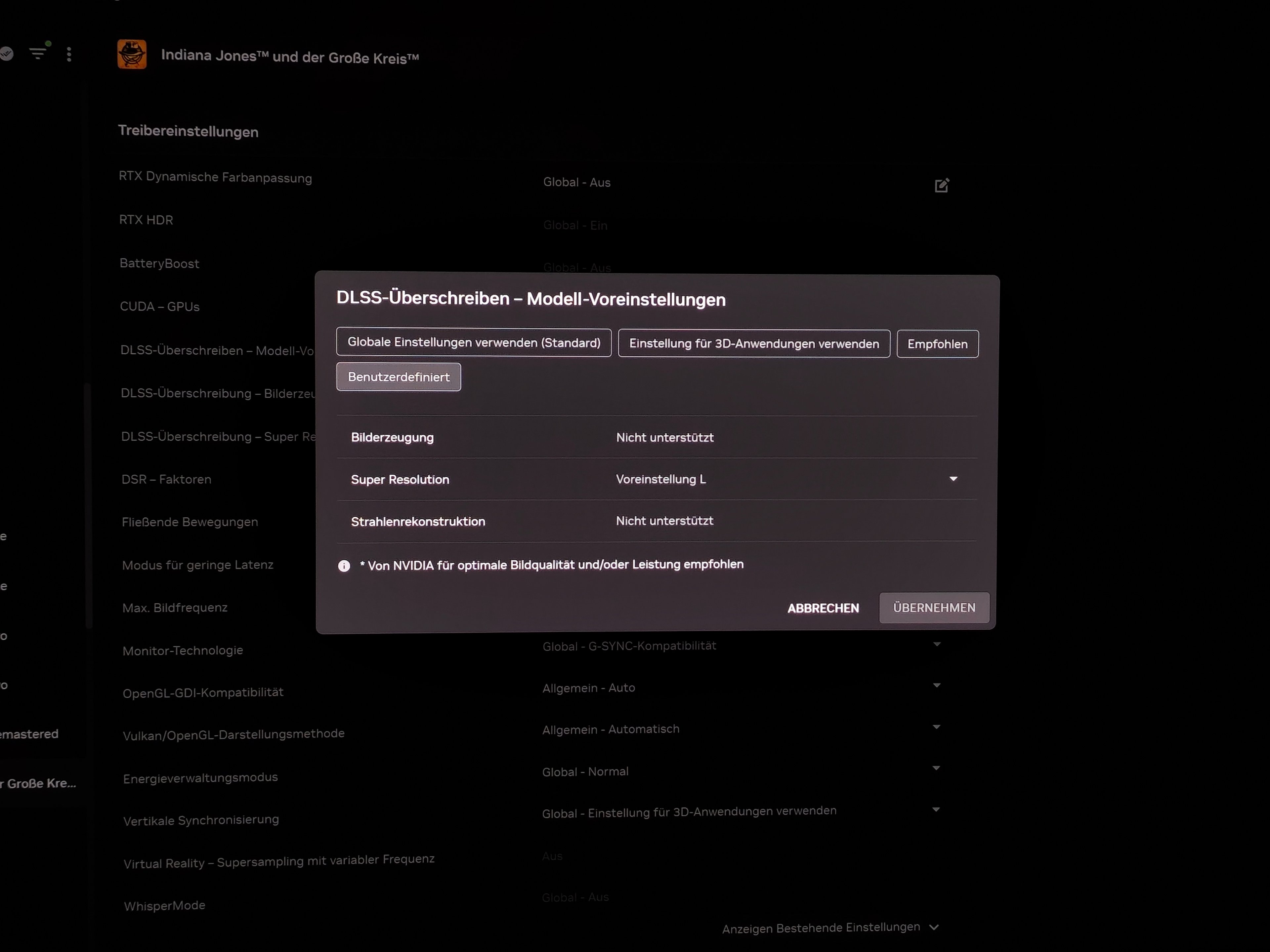 Eine Änderung hat es gegenüber der Beta dabei gegeben: Der globale DLSS-Override in der Nvidia App wird jetzt durch die Auswahl „Recommended“ (Empfohlen) statt vormals „Latest“ aktiviert, denn über die globalen Einstellungen ist nicht immer der letzte (Latest) Stand der Technik aktiv – es hängt vom im Spiel gewählten DLSS-Modus ab.