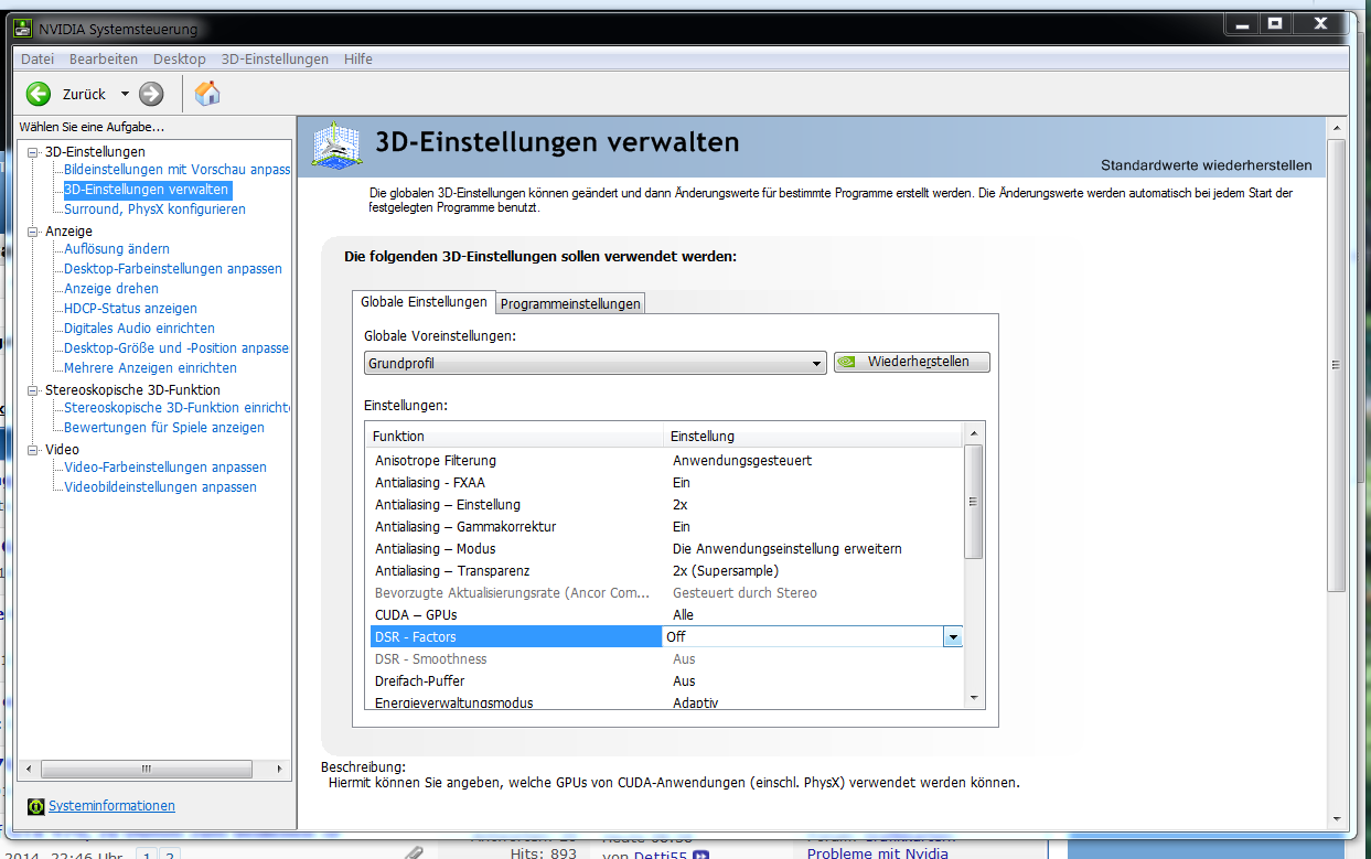 Ich hab erst die Karte gewechselt, dann ein paar Fehlermeldungen gekriegt, alles von NVidia deinstalliert, Neustart, neue Treiber installiert, Neustart, DSR in GeForce Experience aktiviert (Optimalen Einstellungen für CS:GO übernommen, das aktiviert DSR x4.0)