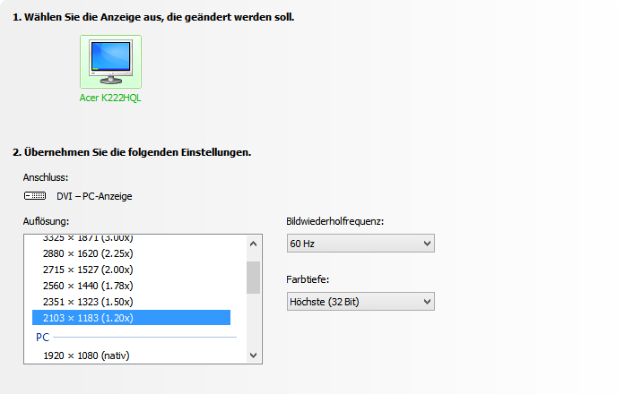 Ich habe eine Inno 3D GTX 970 verbaut und wollte in meinen Nvidia Grafikoptionen die Auflösung auf 2101x1183 umstellen.Leider wirkt dann meine Schrift als wenn jemand mitn Radiergummi drüber gegangen ist und teile der Schrift fehlen.Wie kann ich das wieder in Ordnung bringen?