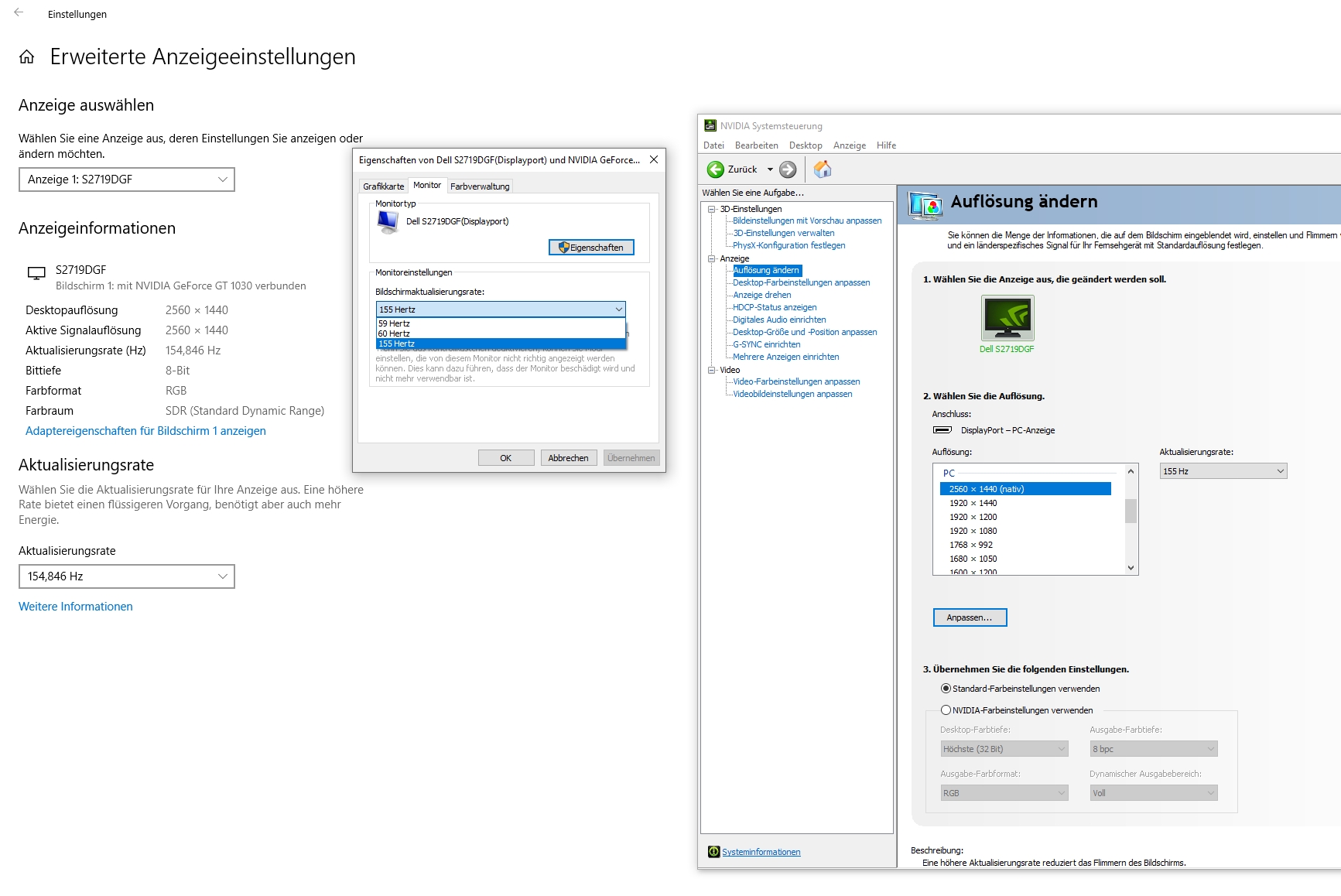 Gehe ich dort weiter über die Adaptereigenschaften->Monitor zur Bildschirmaktualisierungsrate werden mir wieder die vollen 60Hz/144Hz angezeigt.