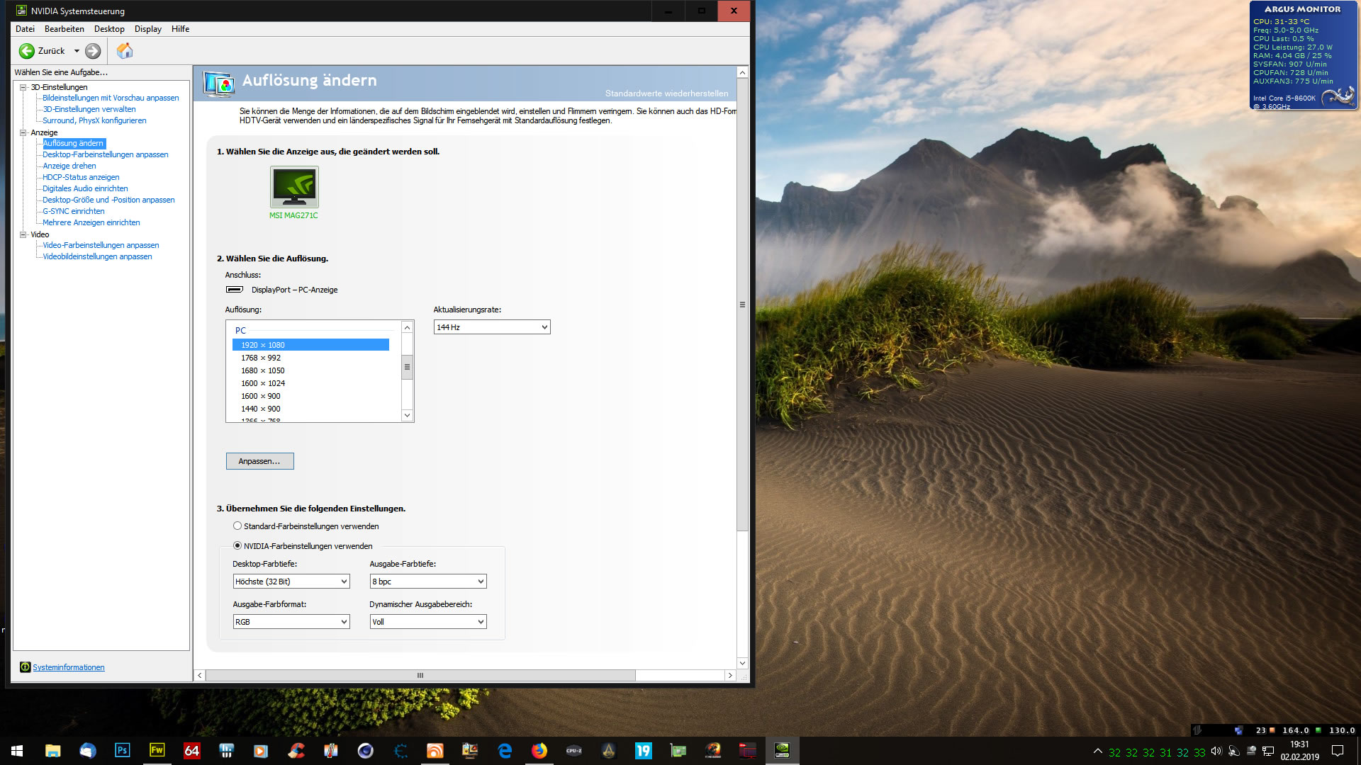 - Ich habe beide Monitore per DP angeschlossen (+Samsung TV via HDMI, ist aber nicht aktiv).