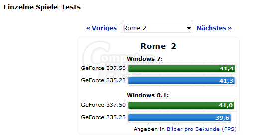 "Leider ohne großen Erfolg. Weder in Metro: Last Light noch Rome 2 brachte der Wundertreiber Geforce 337.50 größere Leistungssteigerungen - weder in Windows 7, noch Windows 8.1. "