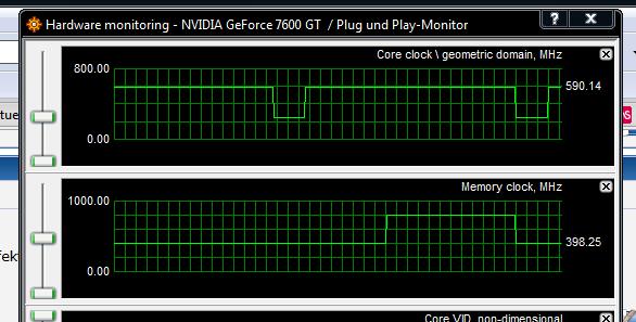 Wenn ich Windows starte, startet die Graka immer mit den Defaulttakts(600/900/1500). Erst wenn ich ein 3D-Game starte und wieder in den Windowsbetrieb gehe, taktet er runter. Eine Möglichkeit wäre jetzt, die Grafikkarte standartmäßig zu untertakten und dann nur im 3D-Modus sozusagen "übertakten" auf die defaultwerte(600/900/1500). Naja mal schaun, das ist mir irgendwie alles zu viel Spielerei. Irgendwann funzt bestimmt gar nichts mehr D: