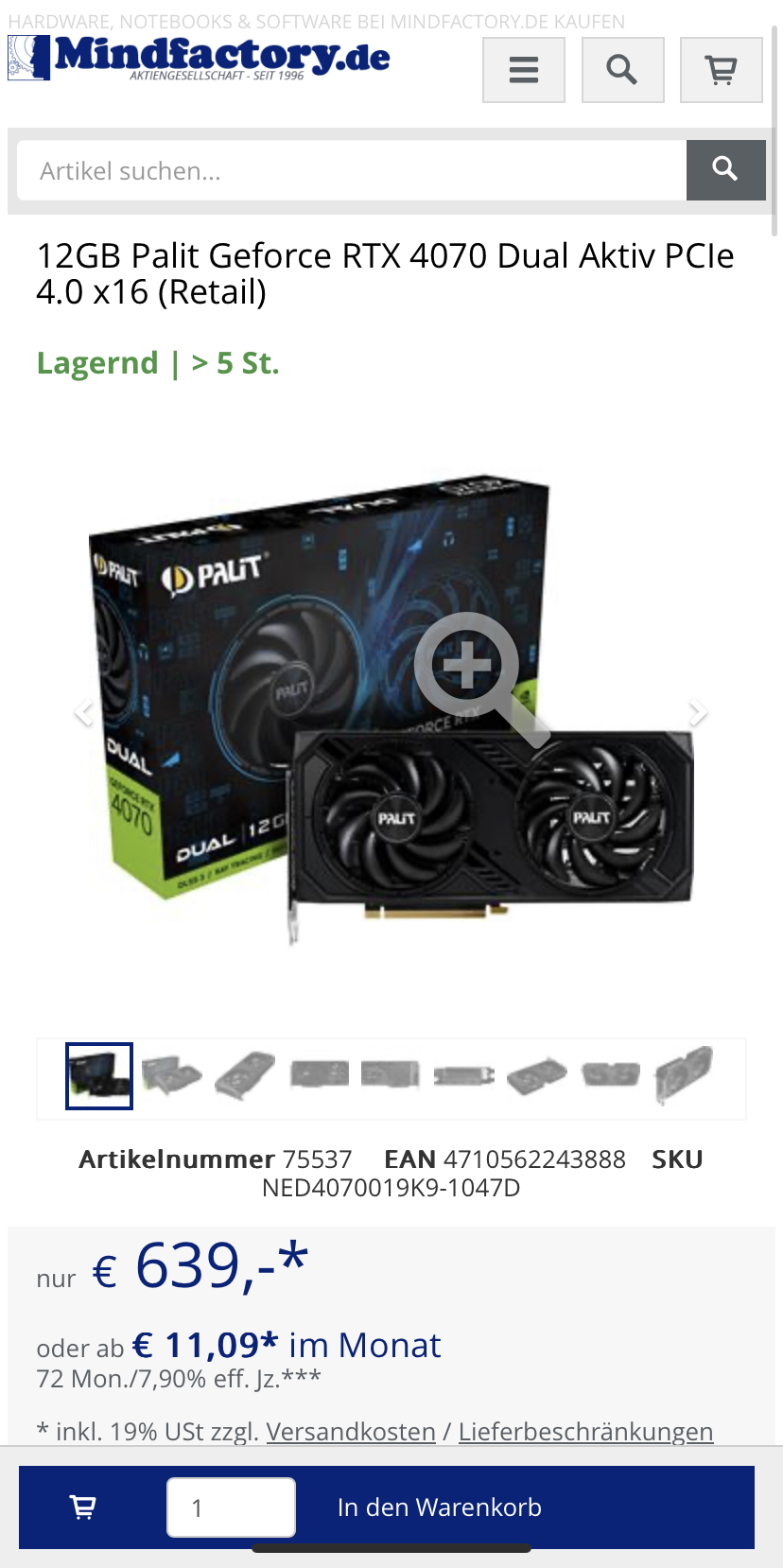 Bei Mindfactory gibt es auch ein Modell für 639€: