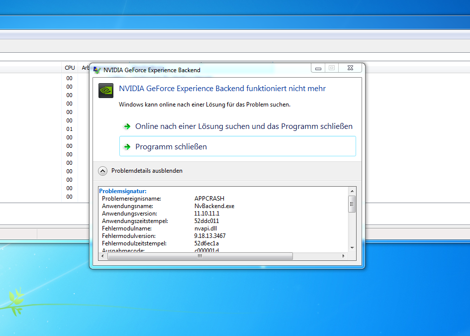 nvidia geforce experience backend funktioniert nicht mehr (wie das berüchtigte bf3 problem)