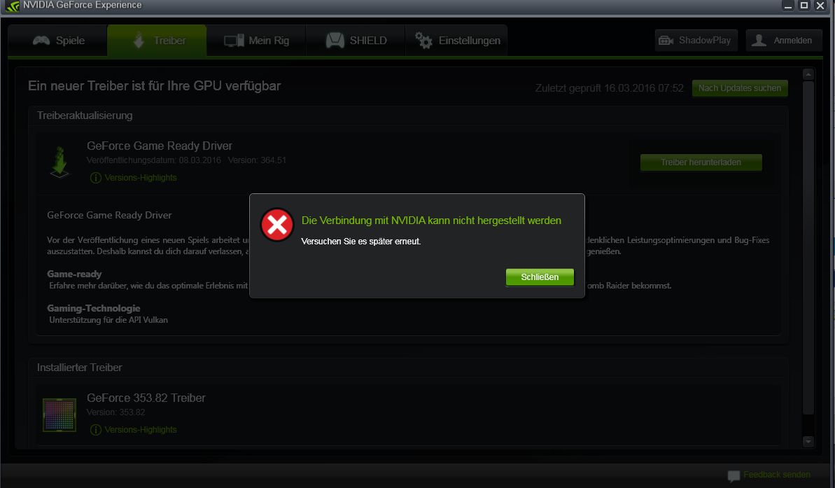 und ein Geforce 353.82 Treiber Version 353.82 ist installiert