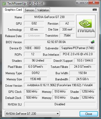 in meinem neuen PC ist eine NVidia GeForce GT 230 Grafikkarte mit 1536 MB RAM eingebaut.