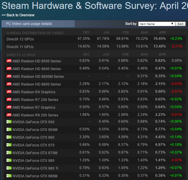 Bei den Spieleentwicklern gehen ja die Preise auch nicht so kontinuierlich und steil nach oben (um einmal in der gleichen Branche zu bleiben und nicht die Autoindustrie als Vergleichsbeispiel zu bemühen), auch wenn der Aufwand, bspw. durch DirectX12, um einiges steigt und programmieren komplexer geworden ist. Wenn das beim PC so weiter geht, bin ich auch in ein paar Jahren (nur für Spiele, denn dafür schaffe ich mir solch eine Grafikkarte an) bei den Konsoleros, anstatt diese Entwicklung weiter mitzufinanzieren bzw. wett zu rüsten. Jedenfalls denke ich bei der nächsten Grafikkarte eher über ein Klassen-Downgrade (von unterer Oberklasse zu Mittelklasse) nach (womit es auf eine Polaris 10 Karte (R9 480(X)) hinauslaufen dürfte) als bei der gleichen Klasse zu bleiben, die preis-leistungstechnisch wohl aus dem Ruder läuft, zumindest scheint das bei nVidia relativ gesichert zu sein (abwarten, wie teuer AMDs Vega 10 in Form einer R9 490 Karte werden und was diese bieten wird).