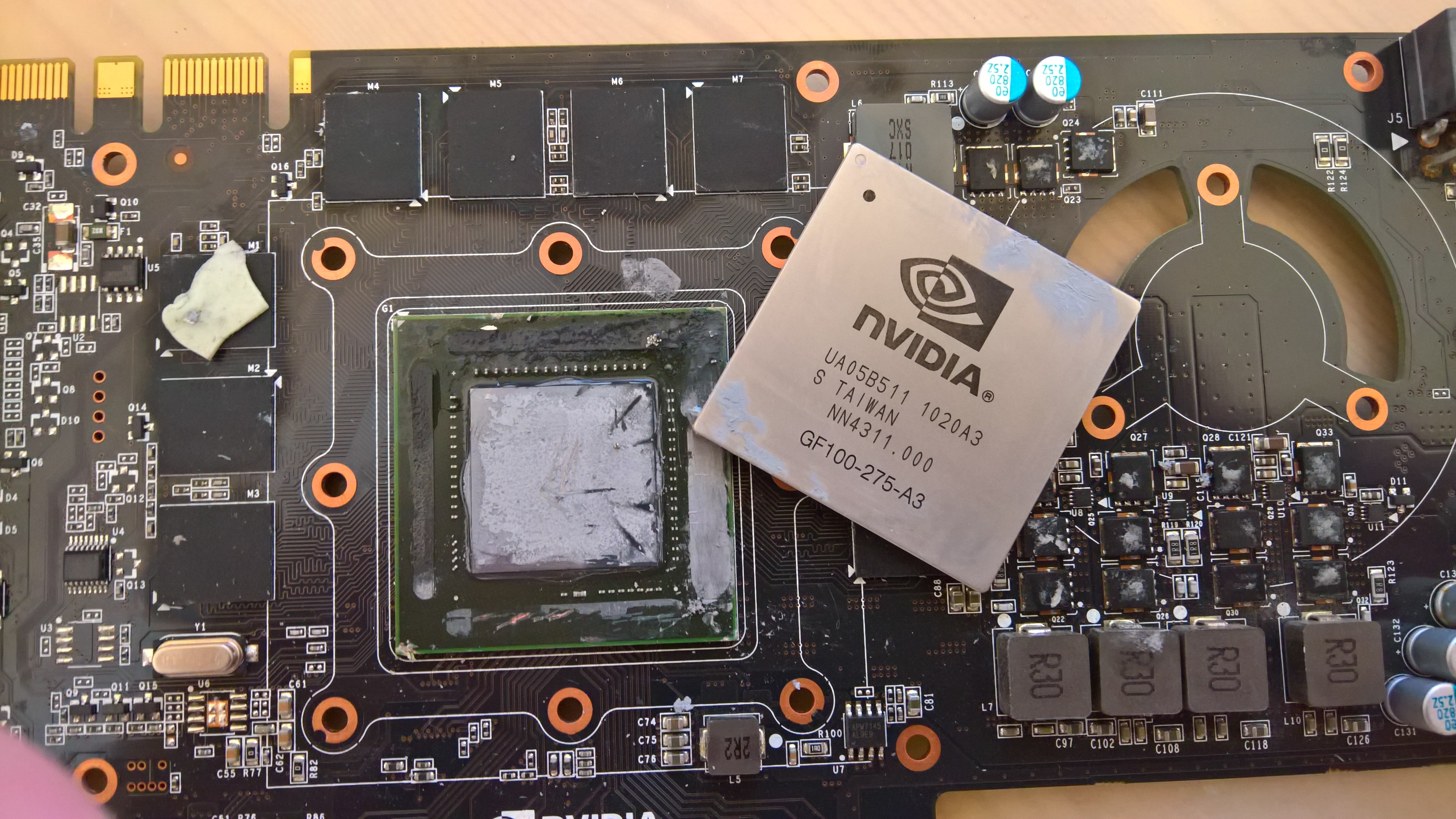 ich habe gerade versucht die Gtx 470 zu köpfen, erst habe ich mir in die Finger geschnitten wegen meinem geschickten Umgang mit Rasierklingen, dann beim entfernen des betonartigen Klebers habe ich auf einer Seite der GPU die SMD-Bauteile mit abgescharbt. ich trinke mir jetzt einen halben Liter Vodka und lege mich wieder schlafen.